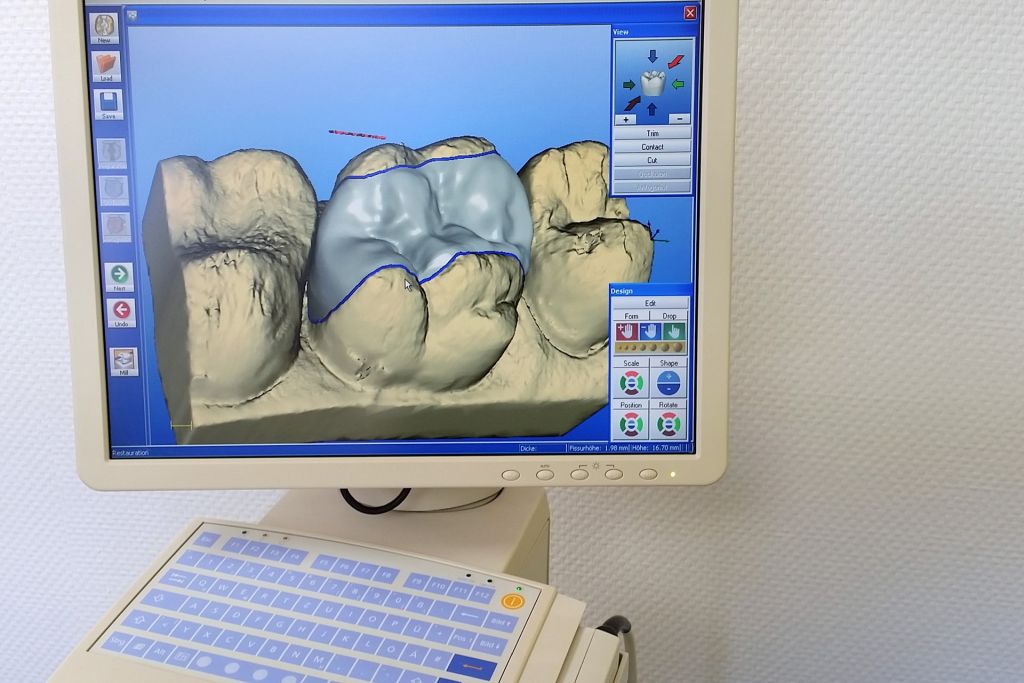 Mit den optischen Daten wird am Bildschirm eine passgenaue Füllung oder Krone dreidimensional konstruiert.